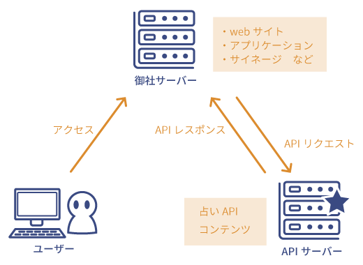 御社サイト内のWEBサイトやアプリなどのサービスからAPIを呼び出します。